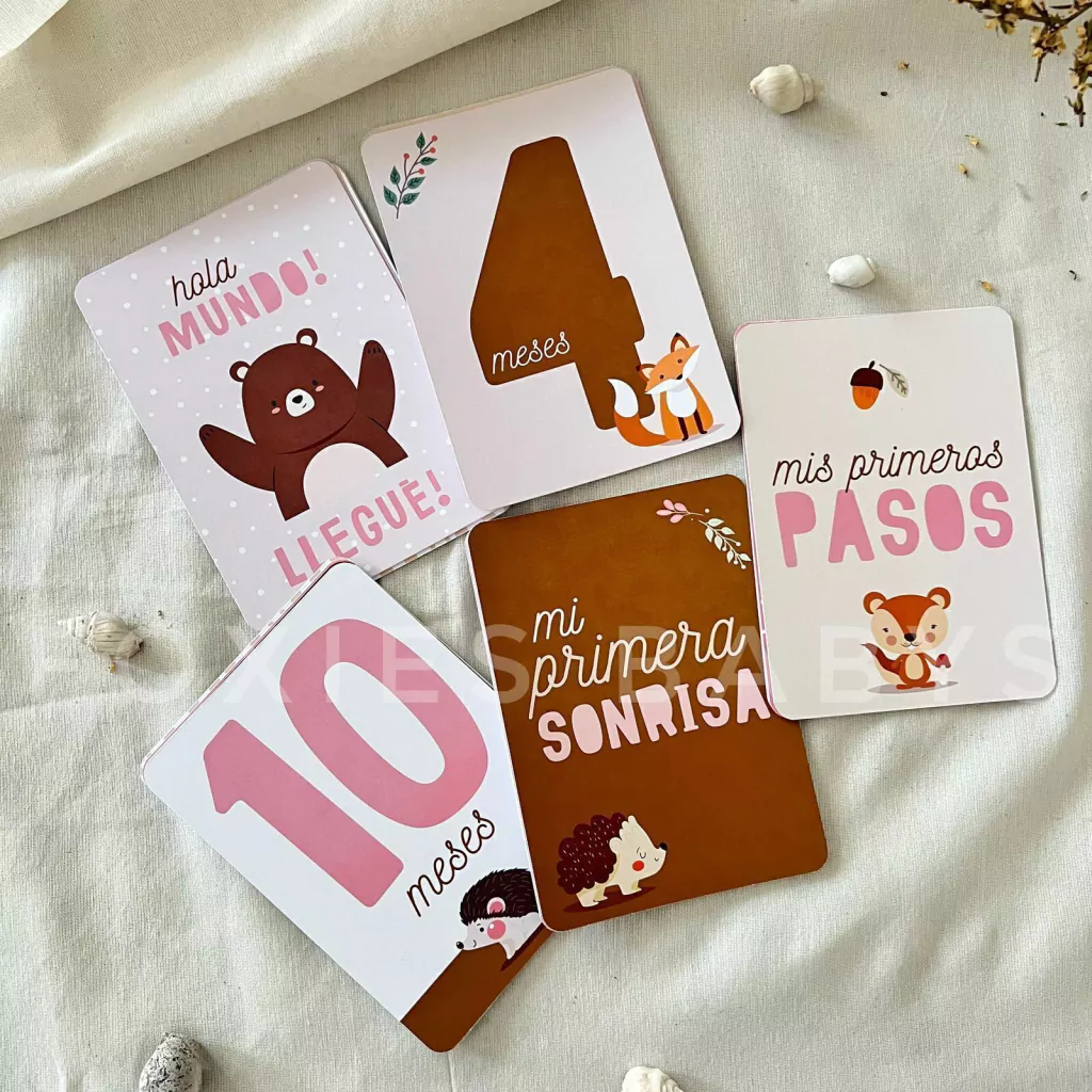 🐻El set incluye: 24 tarjetas con los meses, semanas, primer día y llegada al mundo, momentos especiales y primeras veces del bebé.