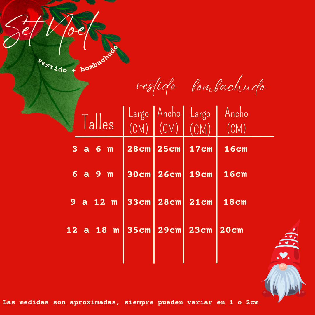 ✨ Set Noel x3 piezas: ¡La opción más adorable para las más bebitas! Este encantador conjunto incluye un vestido, un bombachudo y una vincha con moño a juego, ideal para celebrar la primera Navidad de tu pequeña.