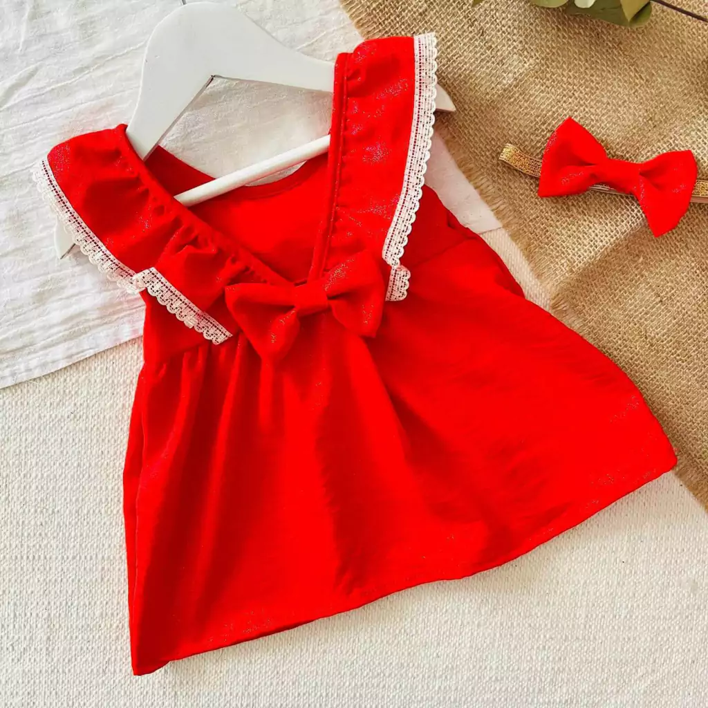 ✨ Set Noel x3 piezas: ¡La opción más adorable para las más bebitas! Este encantador conjunto incluye un vestido, un bombachudo y una vincha con moño a juego, ideal para celebrar la primera Navidad de tu pequeña.