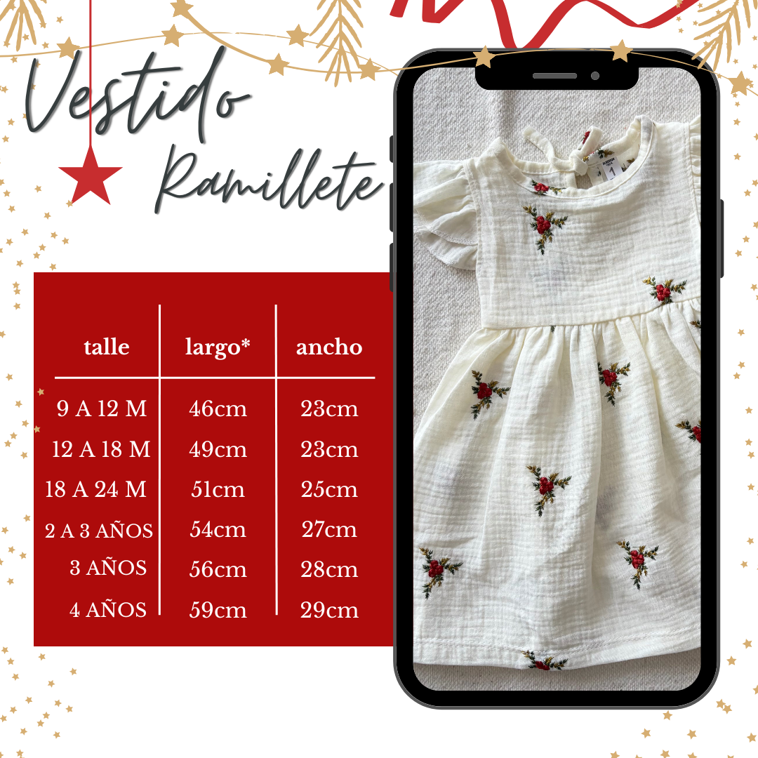 Confeccionado en muselina liviana y fresca, ideal para los días cálidos, y bordado con ramilletes florales en tonos rojos y verdes que le dan un aire navideño sutil, sin perder la dulzura clásica que tanto enamora.