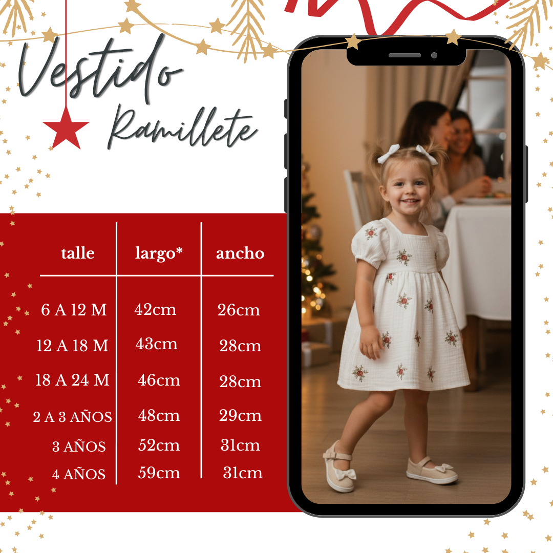 Confeccionado en muselina liviana y fresca, ideal para los días cálidos, y bordado con ramilletes florales en tonos rojos y verdes que le dan un aire navideño sutil, sin perder la dulzura clásica que tanto enamora.